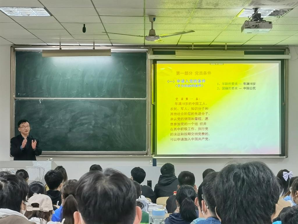 4月18日晚,原副校长黎正稳应邀在金盆岭6教407为水利与环境工程学院第39期入党积极分子培训班讲授第一堂专题党课《党员条件和入党程序》,学院党委副书记银波、学生党建辅导员黄远发及全体入党积极分子参加。