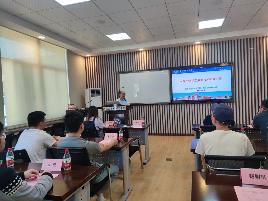 5月5日,能动学院能源与动力工程系刘忠副教授开展专题讲座—水电机组状态检测技术研究进展。第二期长理三峡联培班班主任彭博、联培班全体成员参加。