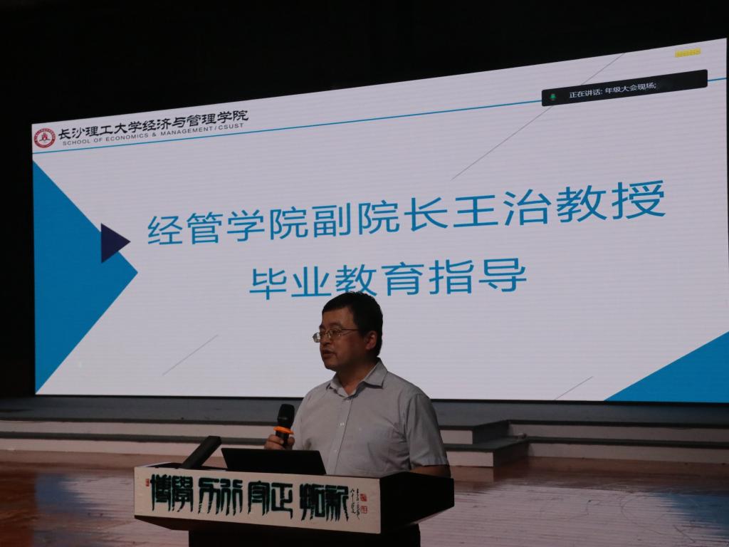 王治分三类进行了毕业教育。他鼓励已上岸的同学们先行阅读经管类图书,以便在读研期间发表核心期刊、参加国家级学科竞赛。他强调,要转变学习方式,化被动为主动,以更开阔的视野面向未来。针对计划“二战”的学生,他再次分析了考研形式。针对待就业学生,他鼓励学生调整就业预期,先就业再择业。