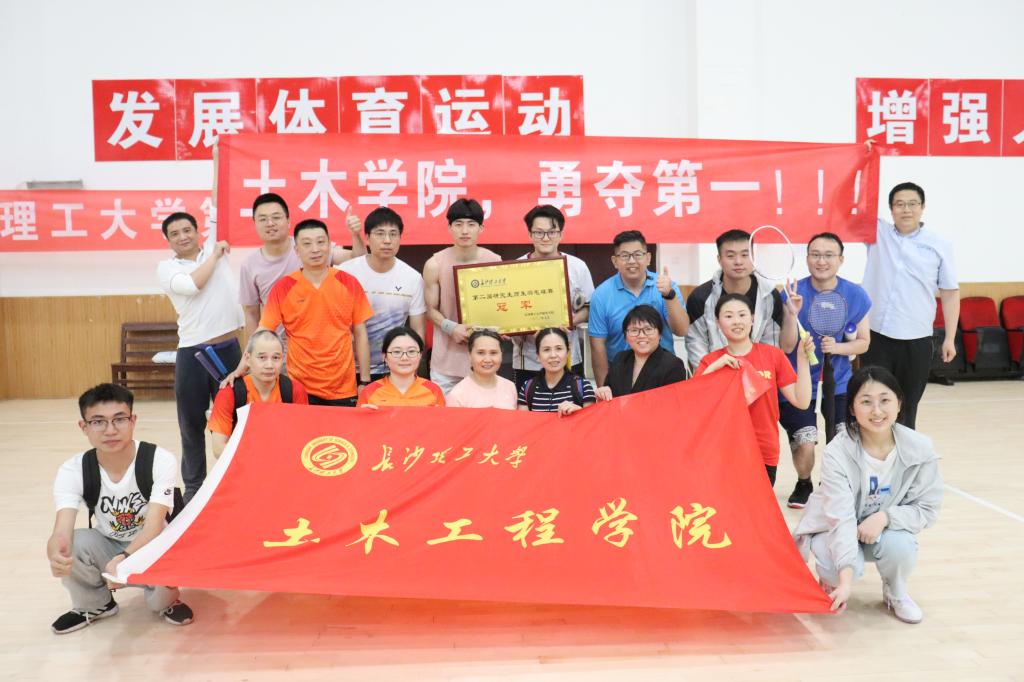 5月24日,长沙理工大学第二届研究生师生羽毛球赛决赛在云塘校区体育馆举行,土木学院研究生师生代表队斩获比赛冠军。