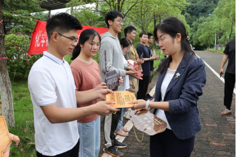 仪式上,毕业生代表潘俊橙发言中讲到:“习近平总书记说过:青年犹如大地上茁壮成长的小树,总有一天会长成参天大树,撑起一片天。而我们这些“小树”即将离开母校,今天种下的小树未来必定和我们一起茁壮成长,为母校增光添彩和遮风挡雨。”