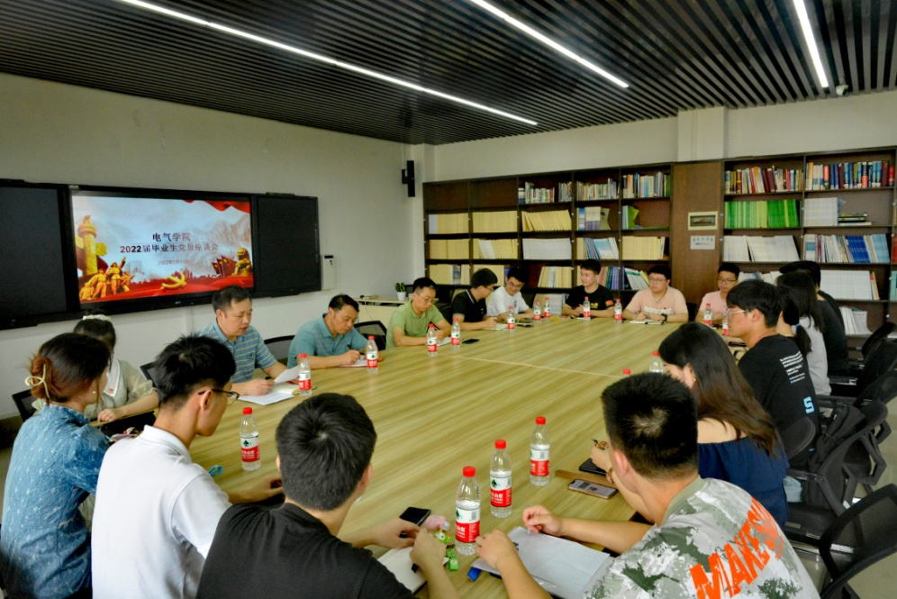5月31日下午,电气学院在云塘校区工一B402举行毕业生党员座谈会,电气学院党委书记符慧林,电气学院党委副书记陈仁凯、任艮丰,学生党建辅导员黄文韬及学生党建发展服务中心各部门、各学生党支部代表参会。