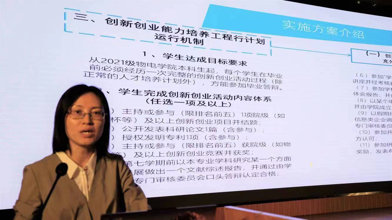 会议伊始,宋国宁为同学们详细解读了物电学院本科生创新创业能力培养工程行动计划实施方案,让同学们对创新创业方案的建设思路、组织机构及运行以及创新创业能力培养工程计划运行机制有了更深入的了解。