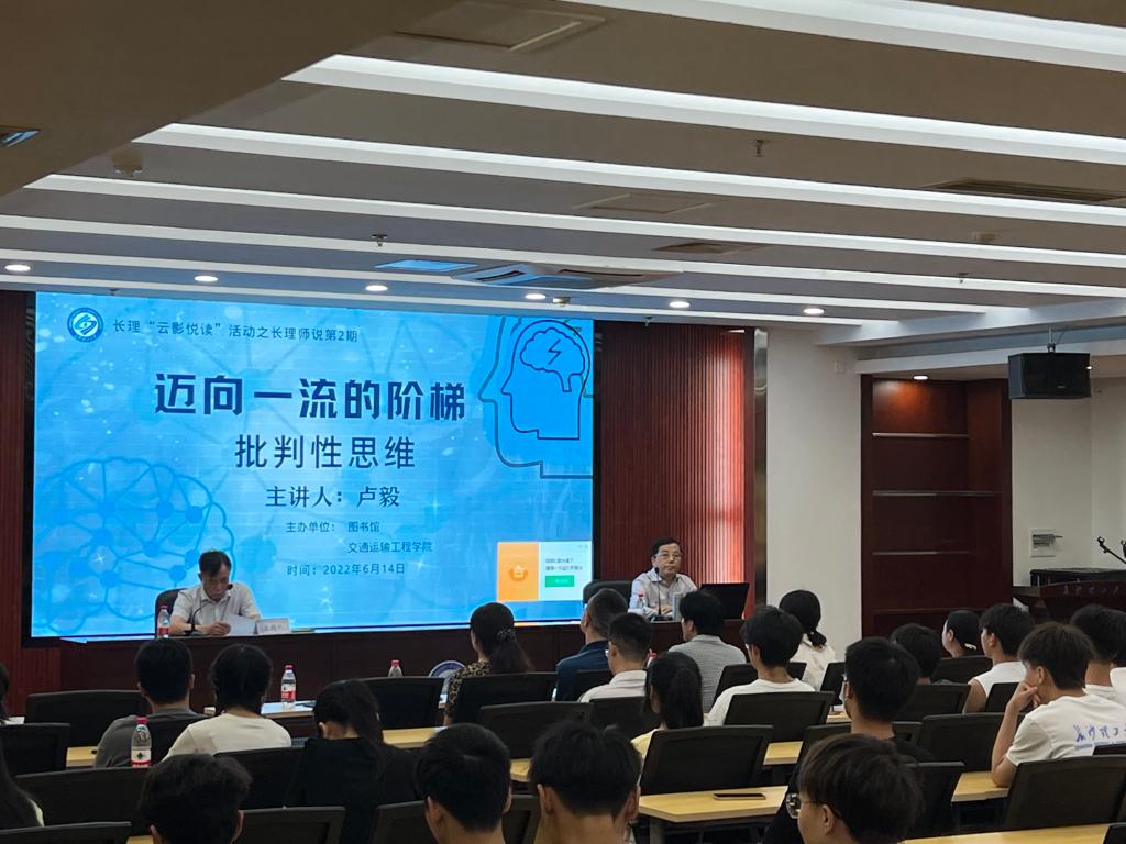 6月14日下午,交通学院共计70余名学生参加了“迈向一流的阶梯—批判性思维”主题讲座。此次讲座由长沙理工大学图书馆主办,同时也是长理“云影悦读”活动之长理师说的第二期,由交通学院教授卢毅主讲。