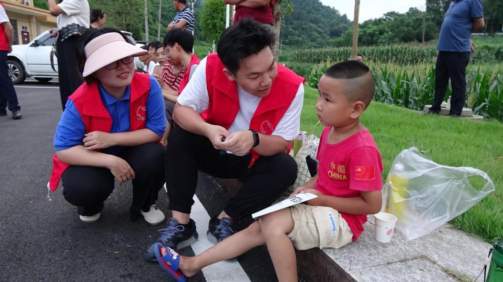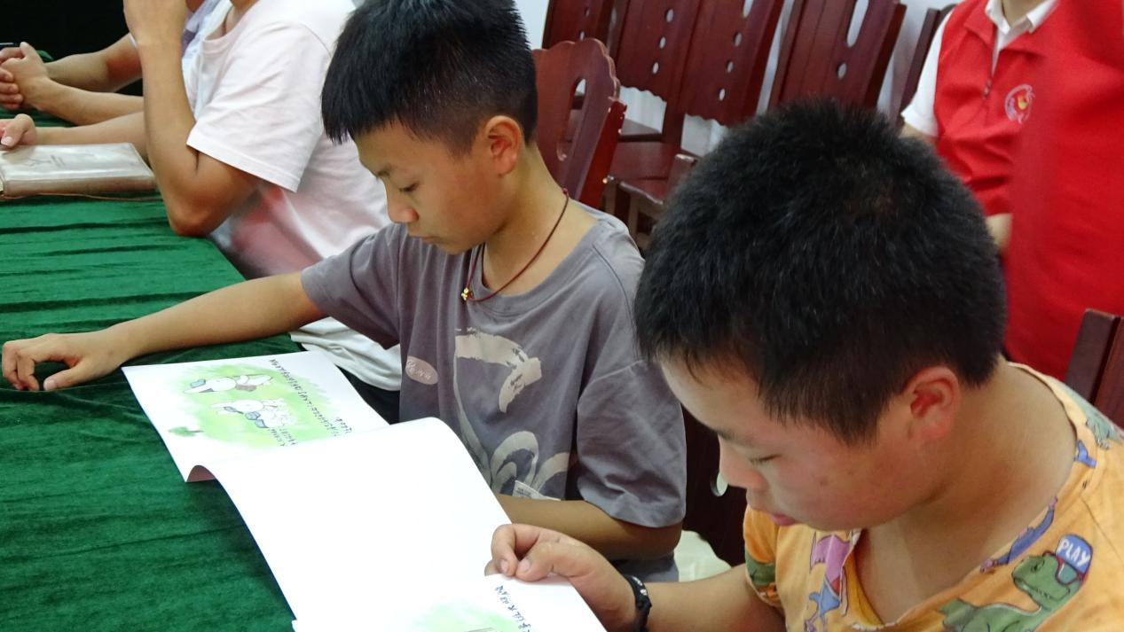 7月20日,在湖南省常德市澧县万家岗村,长沙理工大学水利与环境工程学院水润初心党史宣讲团将绘本《金色的鱼钩》送到小朋友手中,带领他们一起品读党史故事,体悟红色精神。