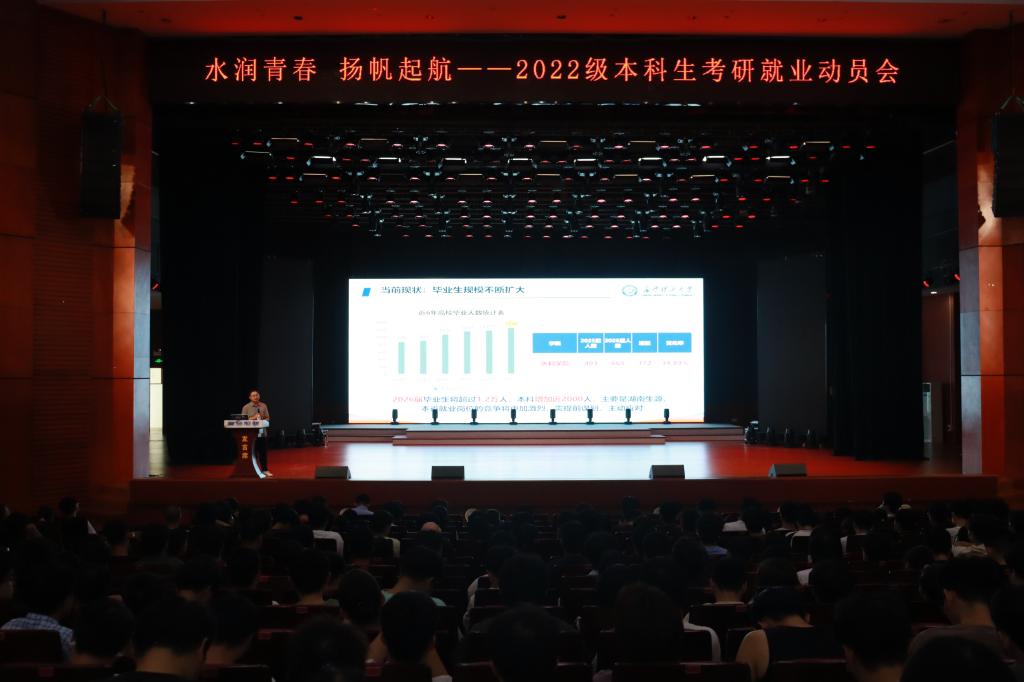 7月1日下午,水利与海洋工程学院在云塘校区大礼堂召开2022级本科生考研就业动员会。学院院长陈杰、党委副书记银波、就业辅导员綦丽、年级辅导员陈鑫林和王祎出席会议,2022级全体学生参加会议。会议围绕考研就业形势分析、职业规划指导、暑期安全管理等内容展开,为即将步入大四的学生提供全方位指导。
