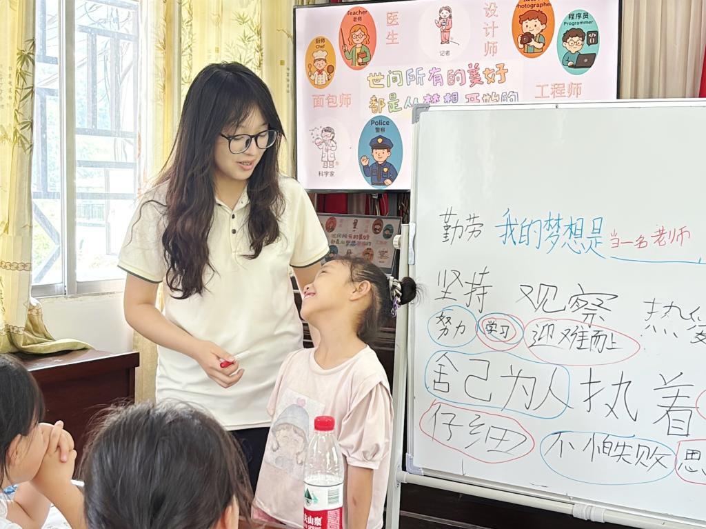 “这堂课就是帮孩子们将科学家精神融入梦想,打下坚实基础。”向青青道出初衷。作为入选“芙蓉学子·乡村振兴”公益计划的团队,长沙理工大学“小小科学家”今年暑假扎根桑植县走马坪白族乡,已为当地孩子带来包括这门课在内的12门特色课程。黑板上交织着科学家精神与童真梦想的印记,团队坚信今日种下的这颗“精神种子”,终会在孩子们心中破土生长,指引他们像前辈科学家一样,以热爱为帆,以坚持为桨,在探索未知的道路上无畏前行。