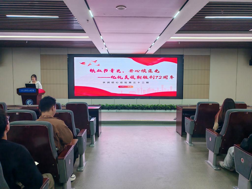 10月23日晚,水利学院在云塘校区新能源一栋二楼会议室举办第三十二期“水润初心”学习论坛,本期论坛主题为“铁血书青史,丹心续荣光——纪念抗美援朝胜利72周年”。活动由本科生第四党支部魏娜同志主持,共计80余名学生参与。