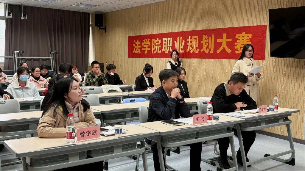 11月18日下午,法学院举办了第三届全国大学生职业生涯规划大赛院内选拔赛。学院党委副书记汪伦,辅导员兰贵辉、曾宇欣出席活动。