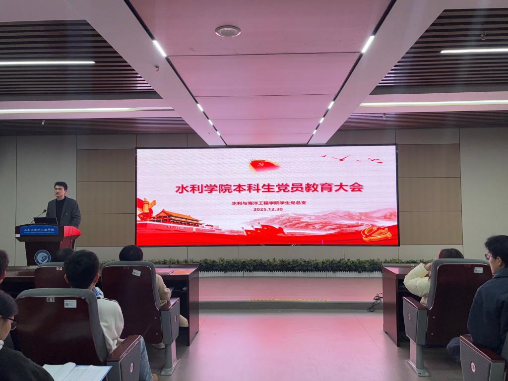12月30日晚,水利学院在云塘校区新能源1号楼二楼会议室召开本科生党员教育大会。学院党委副书记银波、全体学生党支部书记、辅导员及本科生党员参加会议,会议由党建辅导员陈鑫林主持。