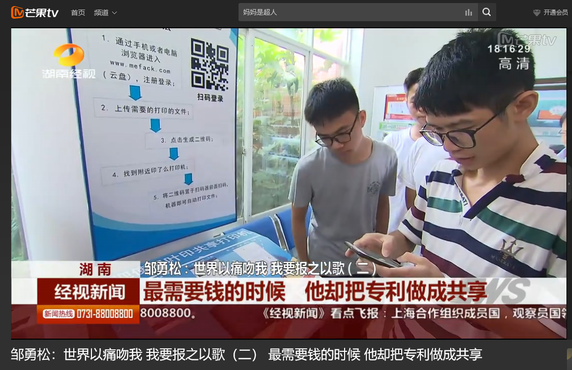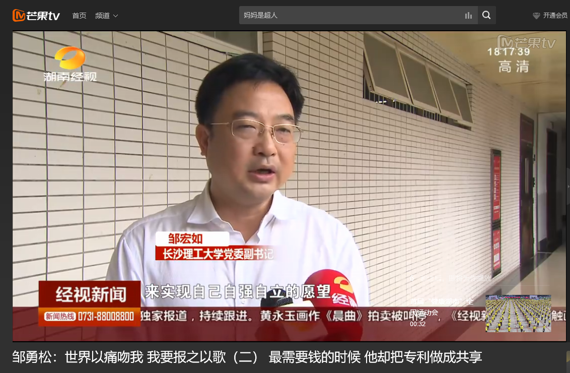 湖南经视 6月10日经视新闻,以《世界以痛吻我 我要报之以歌(二)最需要钱的时候 他却把专利做成共享》为题对雷竞技官网计算机与通信工程学院15级研究生邹勇松进行了报道。