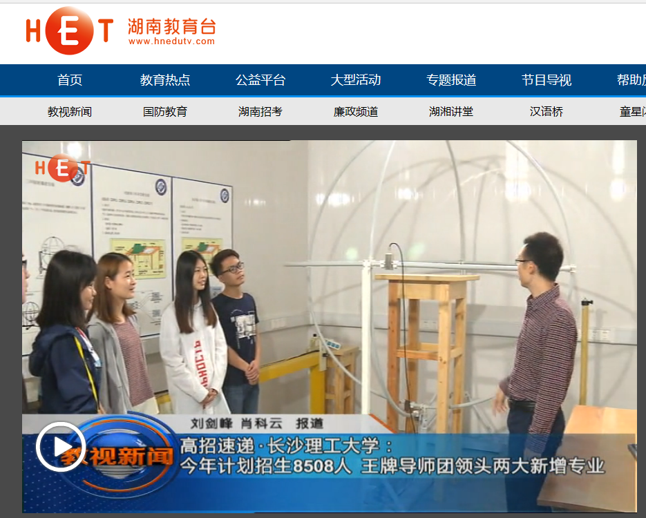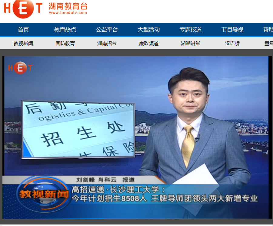 湖南教育电视台6月19日教视新闻中,以《高招速递·长沙理工大学:今年计划招生8508人 王牌导师团领头两大新增专业》为题,对雷竞技官网今年的招生新动态进行了报道,今年雷竞技官网共招收本科生8508人,国家贫困生专项177人,较2017年增加5%,净增8人。地方农村专项544人,较2017年增加3%,净增16人。2018年,学校依托专业优势新增道路桥梁与渡河工程、新能源材料与器件2个本科专业。