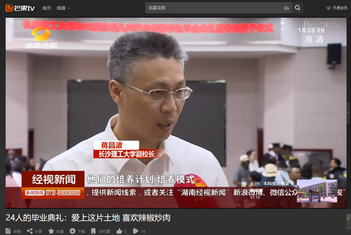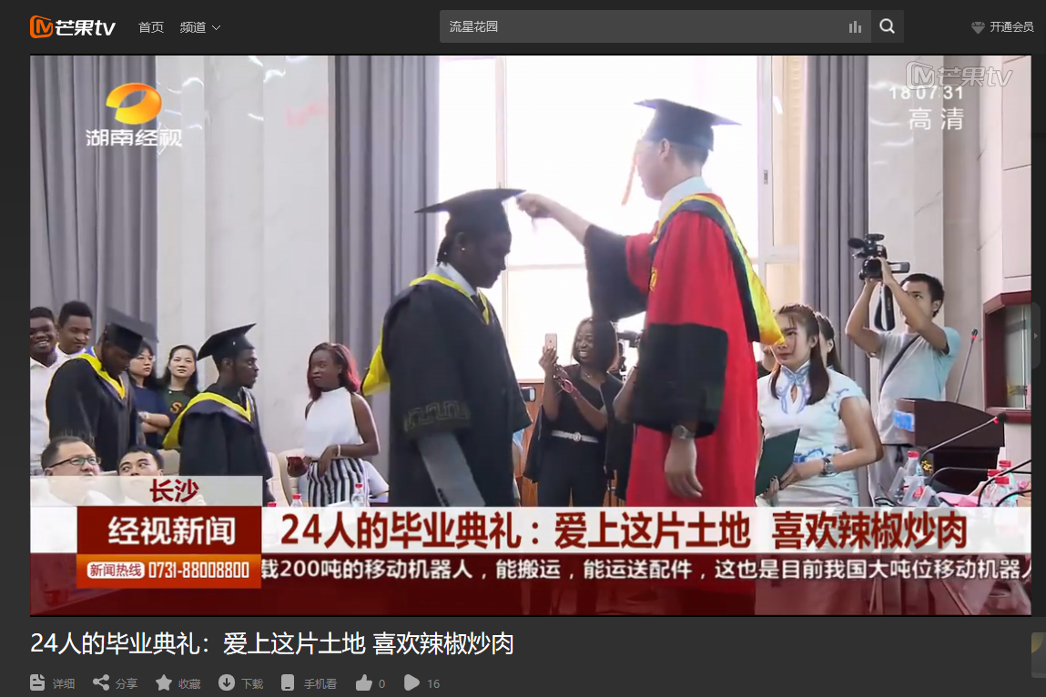 湖南经视7月13日经视新闻,以《24人的毕业典礼:爱上这片土地 喜欢辣椒炒肉》为题,对雷竞技官网与中国路桥长沙理工大学联合培养的赤道几内亚来华学生进行了报道。