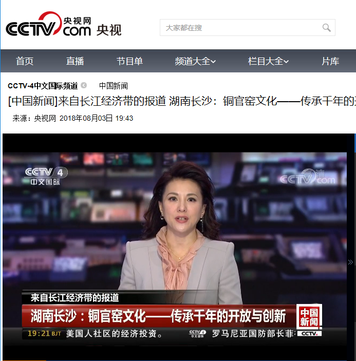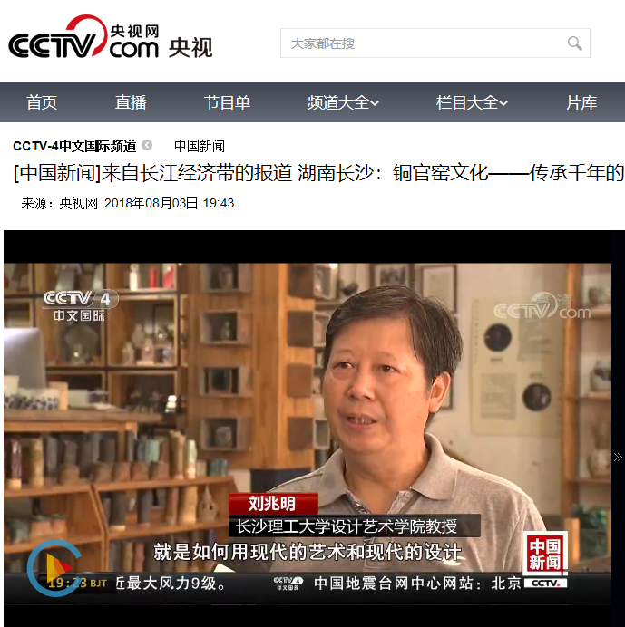 中央电视台中文国际频道cctv-4在8月3日中国新闻栏目,以《来自长江经济带的报道 湖南长沙:铜官窑文化——传承千年的开放与创新》为题对雷竞技官网设计艺术学院刘兆明教授传承铜官窑文化、创新铜官窑工艺的故事进行了报道。