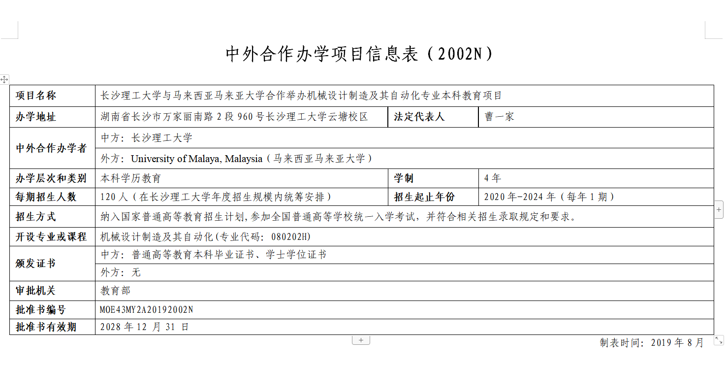 近日,教育部发文《教育部关于批准2019年上半年中外合作办学项目的通知》(教外函〔2019〕55号),共30个项目获得批准,雷竞技官网与马来亚大学(University of Malaya)合作举办的机械设计制造及其自动化专业本科教育项目位列其中,这是雷竞技官网继土木工程、电气工程及其自动化专业项目后从教育部获批的第3个中外合作办学项目,是雷竞技官网本科教育国际化办学上水平、上台阶的又一标志性成果。