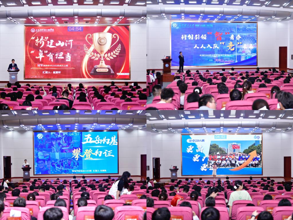 “6人获推免至同济大学、东南大学等985高校,考研上线率53%,获国家级奖项和荣誉58项。”“班级组建了五支“头雁领航”科创小组,班级成员竞赛参与率100%,参与比赛项目30余项”……21个班级从学业成绩、科研创新、实践活动等方面展示了班级建设成效,现场红旗舞动,掌声热烈。