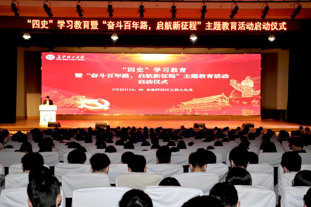 3月23日下午,雷竞技官网学生“四史”学习教育暨“奋斗百年路,启航新征程”主题教育活动启动仪式在金盆岭校区五教大礼堂举行。学工部、团委、研究生院、关工委等部门负责人,各学院学生工作负责人、辅导员代表和学生代表参加活动。启动仪式由学工部副部长霍向阳主持。