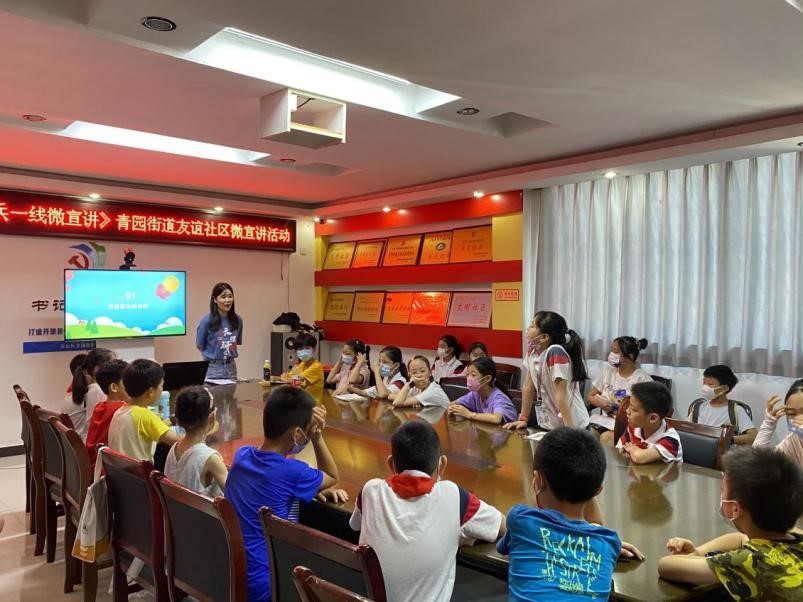 7月15日上午,长沙理工大学理论宣讲进基层专业实践团走进长沙市天心区青园街道友谊社区进行红色故事宣讲,校研究生宣讲团赵冉、米晓雪两位同学分别以《跨过“贫困大山”,我们都想去外面看看》、《新时代,我们要成为什么样的青年?》为主题,为社区的孩子们开展了两场不落窠臼的党史故事讲座。
