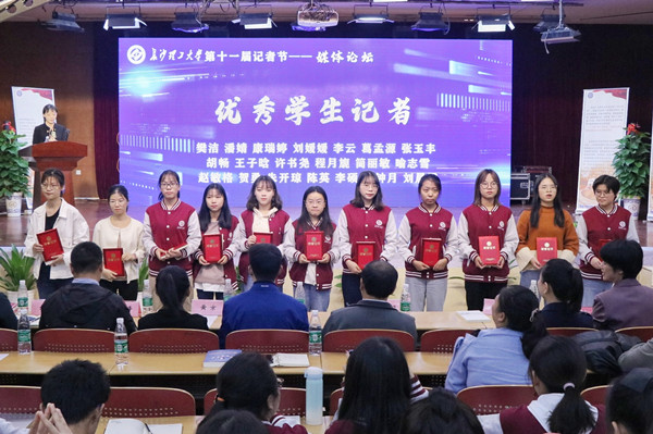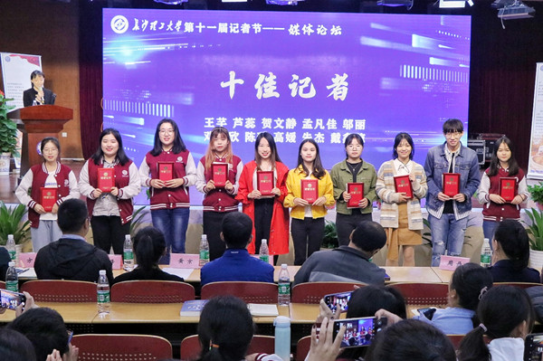 论坛最后,党委宣传部副部长邓崛峰宣读了长沙理工大学2019年度十佳记者、优秀记者表彰决定。现场领导与嘉宾为获奖学生颁发了证书。
