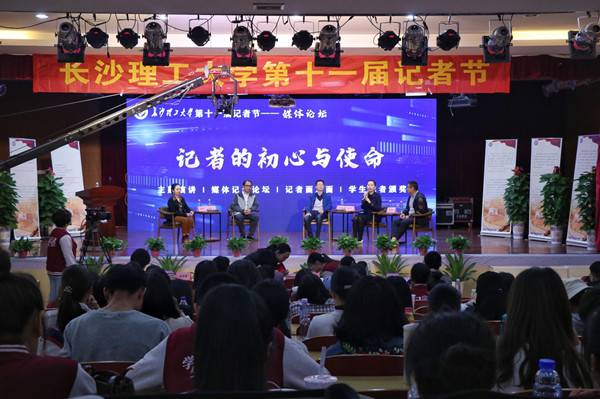 11月12日下午,雷竞技官网在文法学院模拟法庭举办第十一届记者节系列活动之“记者的初心与使命”媒体论坛,中国青年报、农民日报、三湘都市报、法制网、新湖南、红网、湖南教育电视台等媒体记者应邀与雷竞技官网学生记者和文法学院新闻系学生讲述他们的从业故事,分享了他们对初心和使命的理解。校党委委员、党委宣传部部长方琼,文法学院党委书记孔伟红、副院长魏桃初出席论坛。