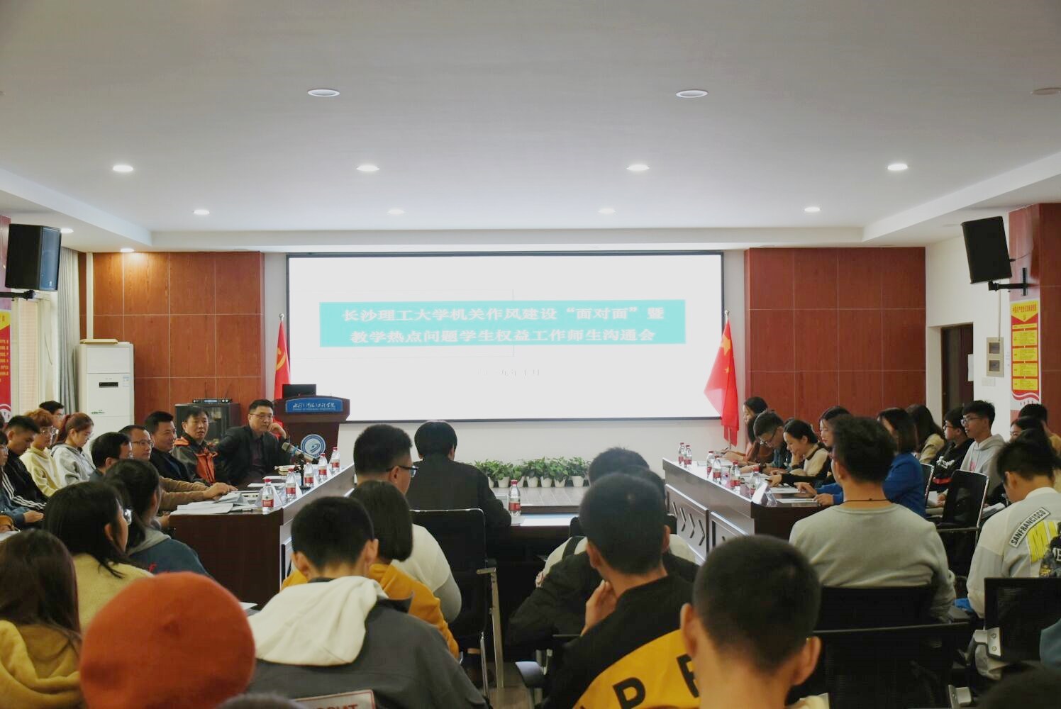 沟通会上,与会师生针对教学热点问题、困难以及如何加强学校机关作风建设和维护好学生权益方面积极发言,就教育教学、图书管理与服务、创新创业能力培养、体育教学及用具、研究生教学管理等方面存在的60个不足之处展开讨论,并提出了许多建设性的意见和建议。会场问答有序、交流积极、氛围热烈,充分彰显了师生对教育教学问题的关注和对学生成长成才的共同期待。