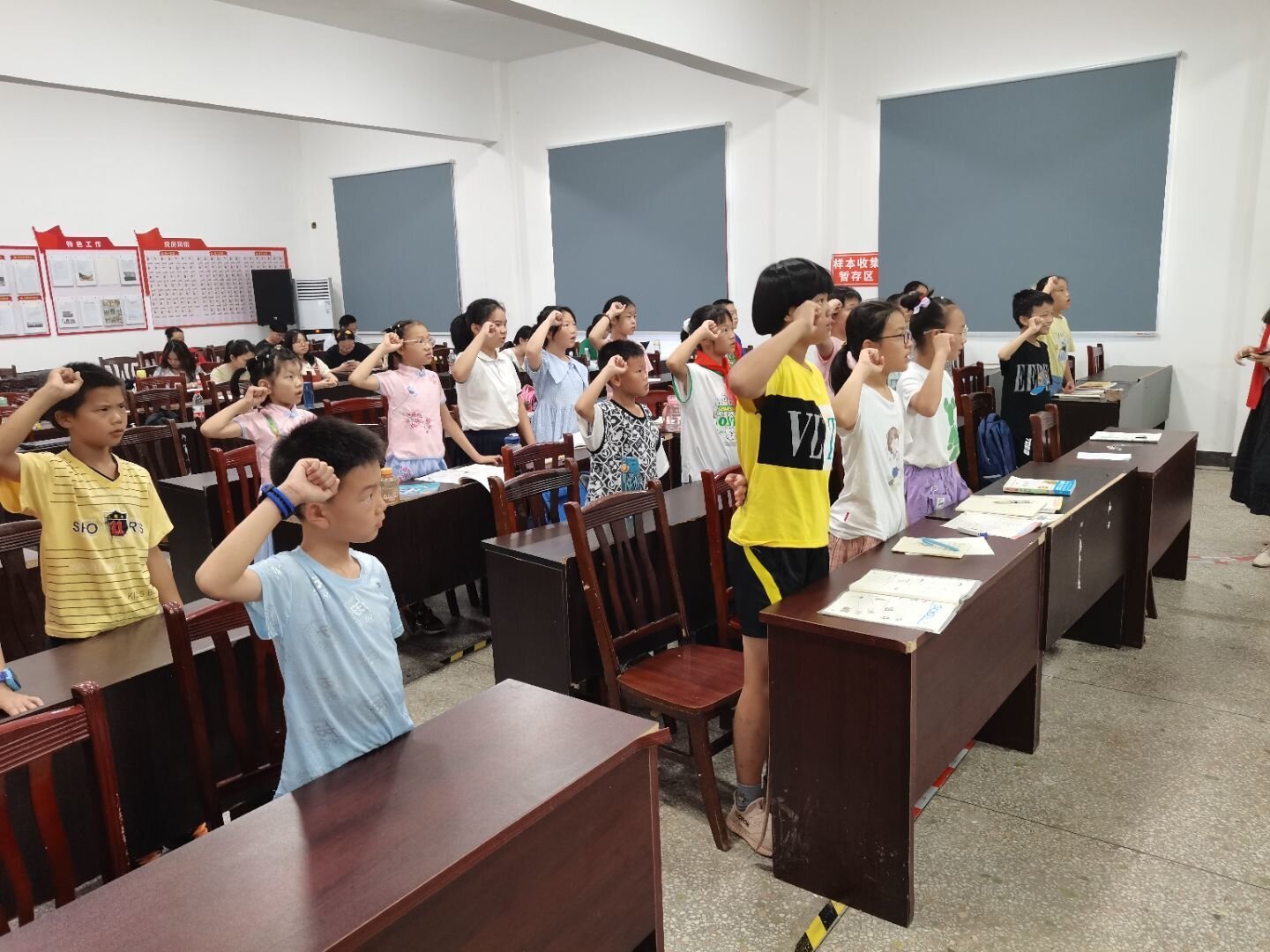 “我热爱中国共产党,热爱祖国,,热爱人民,好好学习,好好锻炼……”小朋友们在志愿者老师的带领下庄严宣誓,激情澎湃,斗志昂扬,这正是长沙理工大学“雷锋号”青少年关爱2022年夏令营现场的一幕。7月12日,长沙理工大学“雷锋号”志愿团于望城区铜官街道郭亮村开展了“雷锋号”青少年关爱2022年夏令营第五日的活动。