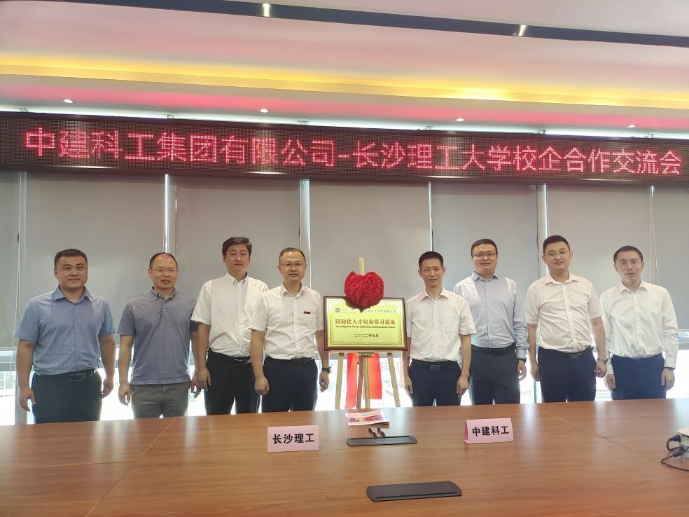 为拓宽学生实习实训及就业渠道,进一步推进校企合作,进一步培养和输送跨文化沟通交流高质量人才,9月1日,长沙理工大学国际工学院与中建科工集团举行国际化人才培养实习基地共建签约揭牌仪式。中建钢构武汉有限公司党委副书记周跃,中建科工湖北公司党总支副书记郭英博,中建钢构武汉有限公司综合办公室主任王超,长沙理工大学教务处副处长李平,国际工学院院长吴迪龙,党总支副书记乔法光,副院长秦卫星等相关人员出席交流会。