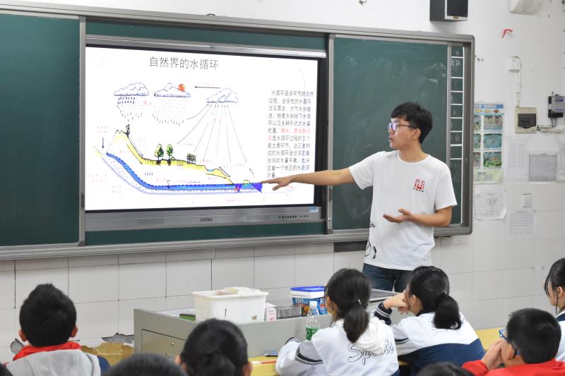 当天下午,志愿者们在砂子塘小学第六都校区开展“水与水资源”环保课堂。PH试纸测试、水净化实验、水污染实验,在志愿者的指导下,同学们认识到了当前水资源短缺的严峻性以及水污染对于生态环境的危害,从而将节约水与保护水化为一种行动自觉,从自身做起,从身边的小事做起,实践思考节水护水之道。