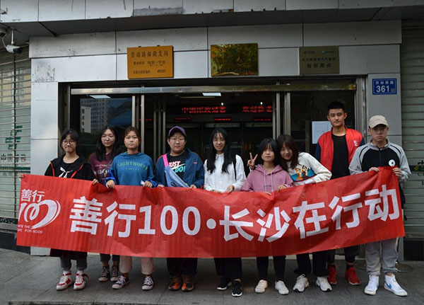 11月10日上午,长沙理工大学于侯家塘顺利举行了“善行100”第三次劝募活动,设计艺术学院志愿者积极参与其中,带队人员为学生干部钟慧玲。