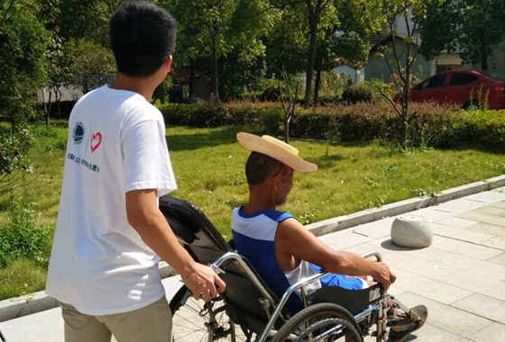 上午8点,实践队员及志愿者们集合并乘车前往敬老院。抵达后,队员们首先将准备的绿豆白糖送给院方,随后队员们分为四组,为不同楼层的老人分别送去关心和提供一些帮助。非特护楼层的老人生活基本能够自理,队员们开始帮老人们拖地、擦桌。特护楼层的老人生活起居则由专门的护理人员负责照应,队员们到每间房间送去慰问,为其按摩,协助护理人员扶行动不便的老人下楼活动。在与老人交谈间了解到,他们大部分都有子女,但不在身边。而在护理院的生活都有人照料,护理人员也十分尽心尽责,对他们而言也是一个比较好的选择。对于队员们的到来,他们也由衷开心。