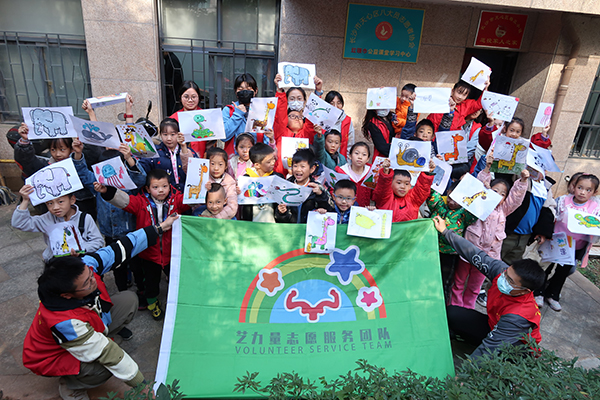 本次活动旨在通过手绘的方式提高孩子们对动物知识的了解,在实际操作中锻炼孩子们的色彩感知力,帮助孩子们提升情感表达和动手能力。“志愿者小老师”带领小朋友们一同观看了动物动画短片,科普了一系列“世界之最”的动物,并开展了绘画辅导。小朋友们选择了自己心仪的动物线稿,在志愿者们的耐心帮助下,孩子们拿起画笔发挥奇思妙想,运用灵动的色彩绘出了一幅幅动物画像。在欢声笑语中小朋友们手拿作品与志愿者们合影留念。