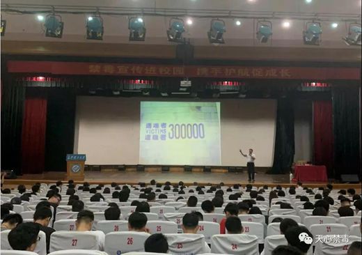 最后,全场学生起立,举起右手庄严地宣誓,用坚定的声音表达了对拒绝毒品的决心和态度。讲座在千人齐唱《歌唱祖国》的歌声中结束。