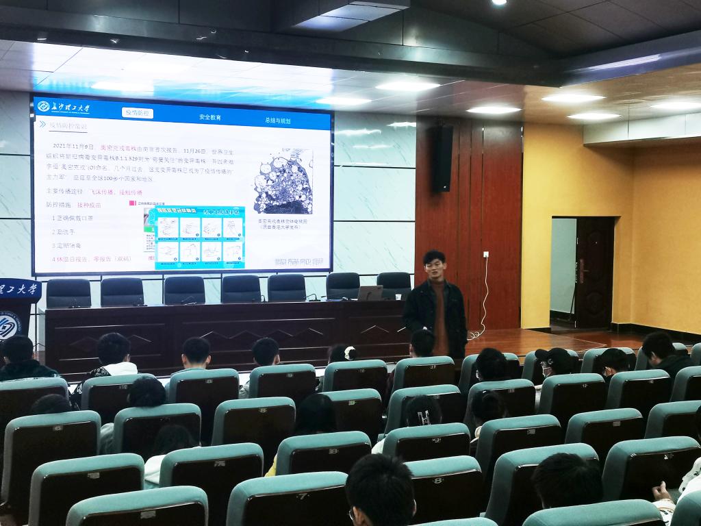 本次会议主要从疫情防控、安全教育、总结与规划三个方面展开。首先,王志亮向全体同学告知了疫情最新情况,提醒同学们要提高警惕,做好疫情防控常态化打算,要求寒假期间每天进行健康打卡。随后,王志亮从安全离校、交通安全、消防安全、钱财安全四个方面为学生们讲解安全“四步走”守则,安全离校返校。接着,由21级各班班长做学期末总结汇报,王志亮为各班提出改进意见。最后,王志亮对本学期做出学习情况分析,并要求同学们培养“提前意识”与“红线意识”,希望能提前做好下学期规划。