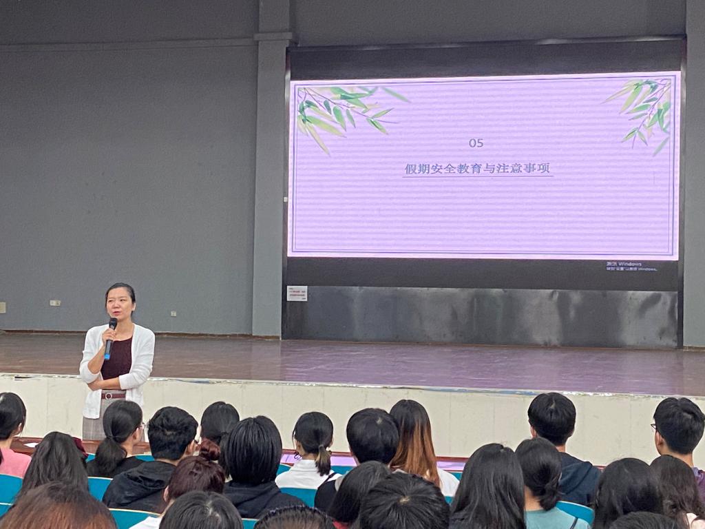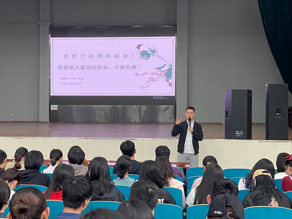 何涛和叶鑫分别从“专业学习与个人规划”“个人素质拓展与能力提升”“日常生活与人际交往”“思想建设与认知”“假期安全教育与注意事项”五个方面紧贴学生的学习和生活实际进行了讲述。