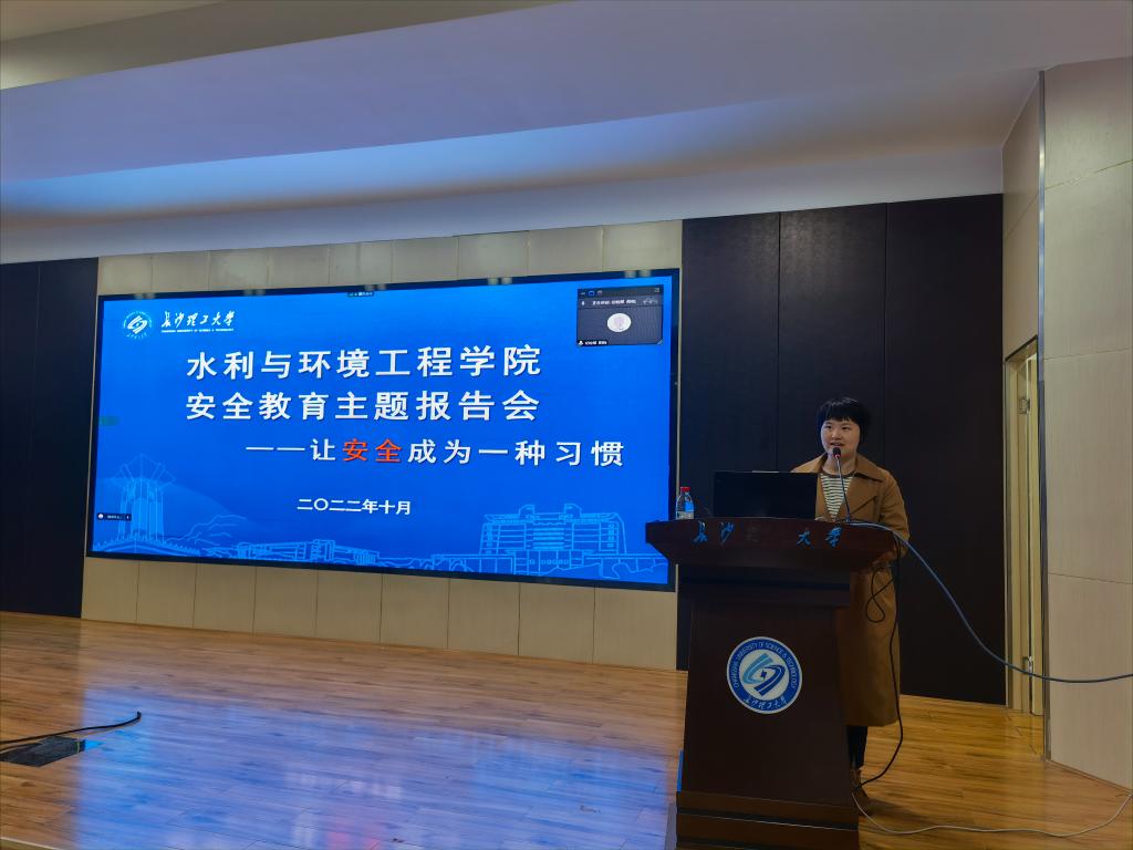 为提高全体水利学子的安全防范意识,预防各类安全事故的发生,10月6日晚19:00水利学院在工三B201召开“让安全成为一种习惯”安全教育主题报告会,会议由院党委副书记银波主持,特别邀请到保卫处副处长王艳鸿作报告,学工办王正博和包括班长、安全委员、寝室长代表在内的本研近四百名学生代表参会,22级新生通过腾讯会议线上参会。
