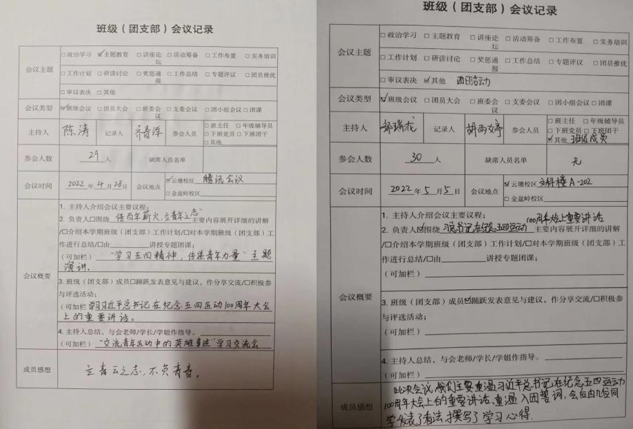 在“百年芳华,青春长理”主题活动中,交通学院部分团支部组织重温了习近平总书记在纪念五四运动100周年大会上的重要讲话和入团誓词,开展经验交流会。如工管1902团支部,在团支书殷郸旗的带领下,回顾了入团誓词,重温入团初心。在本次团日活动中,同学们积极配合本班团支书的工作,发表了自己的看法,描述了自己对未来生活的规划与要求。活动结束后,各团支部均上交了本班的活动交流成果。