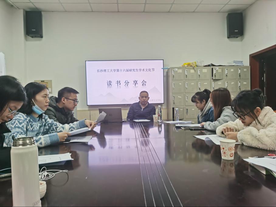 11月23日晚上7时,长沙理工大学第十六届学术文化节之马克思主义学院读书分享会第三次活动在金盆岭校区4教503教室举行。此次活动采取线上线下相结合的方式,主要精读了陈先达教授的《历史唯心主义为何难以驱逐?》这篇文章并进行了讨论。分享会由学院余乃忠教授作为导读人,曹子璇、成婷、戴璐、邓杰、高勇五位同学作为领读人,2021级全体研究生积极参与。
