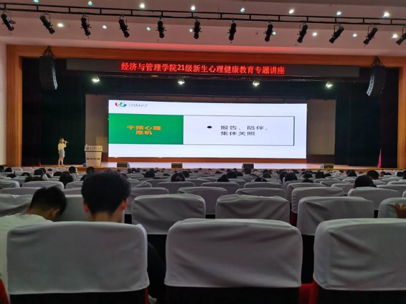 为普及心理健康知识,帮助新生解决入学面临的各种心理问题,我院于9月28日下午2:30,在五号教学楼大礼堂举行了"21级新生心理健康教育专题讲座"。本次讲座有幸邀请了湘潭大学心理健康教育中心副主任程燕副教授,长沙理工大学心理健康教育中心易敏老师进行主讲。参与本次讲座的有21级新生辅导员王宝宝老师和肖翠老师, 学院心理辅导员何艳芝老师,研究生辅导员陈莹老师,以及经管学院全体21级本科新生、研一新生。此次讲座由王宝宝老师主持。