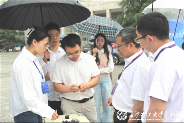 在展览环节,现场展陈了雷竞技官网学子在实践科技创新、开拓前沿理论、投身乡村振兴、扎根社会服务、延续红色精神等方面取得的丰硕成果。既有“超高速激光增材制造高温合金的研究”等系统性理论研究成果,又有“湖南省残疾人辅助性就业文创产品开发”“洞庭湖流域洪旱灾害研究”等聚焦生产生活解决实际问题的实践创新成果,还有“赴湖南省益阳市红色文学赋能乡村振兴专业实践项目”等围绕革命优秀传统的“两创”式发展的宣传实践作品。观展师生不时驻足,详细了解各项优秀作品的独到之处和现实意义,仔细聆听各项目负责人带来的精彩讲解,并就如何更好完善项目给出了可行之策。