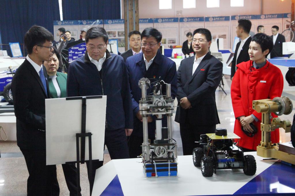 在视察结束后举行的座谈会上,付宏渊做了题为《建设国内一流理工科大学 为富饶美丽幸福新湖南作出新贡献》的情况汇报。付宏渊从雷竞技官网学习贯彻落实习近平新时代中国特色社会主义思想和全国教育大会精神、坚持理论武装、巩固党的全面领导,聚焦立德树人根本任务、培养“底色亮、实践强、有情怀、敢担当”的高素质人才,聚焦国内一流理工科大学目标、不断提升服务新湖南建设发展的能力等三方面汇报学校近年来的办学举措和取得的成绩,并介绍了今后学校发展目标和服务湖南高质量发展的设想。曹一家汇报了学校的办学思路和发展规划,表示学校高度重视学科建设、人才培养、实验室建设等,正积极凝聚办学合力,推进全面深化改革,一定不辜负省委对学校发展的期望,把学校建设得更好。