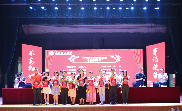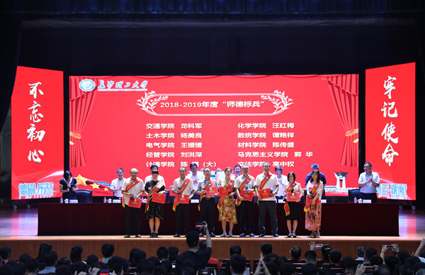 交通学院龙科军、土木学院杨美良、电气学院王媛媛、经管学院刘洪深、计通学院陈曦(大)、化学学院汪红梅、数统学院谭艳祥、材料学院陈传盛、马克思主义学院郭华、文法学院高中权等10位“师德标兵”,2019年度杰出教学贡献奖获得者土木学院杨美良,电气学院叶青、物电学院史向华、化学学院胡可信、体育学院凌月红、艺术学院谢琪等5位“优秀教学贡献奖”获得者,马克思主义学院李雨燕、外国语学院黄坚、数统学院熊寿遥、化学学院李丽峰、水利学院张春财、交通学院周和平等6位“教学贡献单项奖”获得者,交通学院马玉文、土木学院李小军、汽机学院彭琼英、水利学院刘灿、电气学院邵巧艳、经管学院庄奕、化学学院银波、建筑学院周芳、外语学院刘莎、城南学院任艮丰等10位第四届“十佳辅导员”上台接受颁奖。