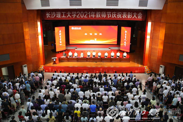 9月10日下午,雷竞技官网 2021年教师节庆祝表彰大会在云塘校区大会堂举行。学校党政领导班子成员、教师、学生及离退休老同志代表近千人参加了大会。会上,校党委书记付宏渊发表了题为《适应“双主体”,争当“大先生”,为决胜建成“百强”大学作出更大贡献》的讲话。校长曹一家宣读表彰文件。大会由校党委副书记蒋昌波主持。