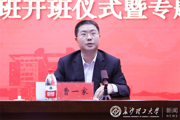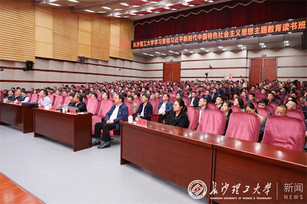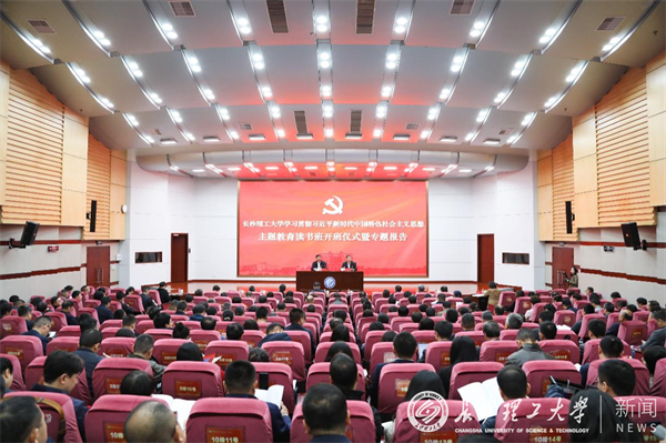 4月23日上午,长沙理工大学学习贯彻习近平新时代中国特色社会主义思想主题教育读书班开班仪式暨专题报告在云塘校区图书馆报告厅举办。校党委书记付宏渊作动员讲话并以《深学细照笃行习近平新时代中国特色社会主义思想 全力推进学校高质量发展》为题作首场专题报告。校长曹一家主持会议。省委主题教育第二十二巡回指导组成员周韶峰、盛钊,全体在家校领导,学校副处级及以上干部参加。