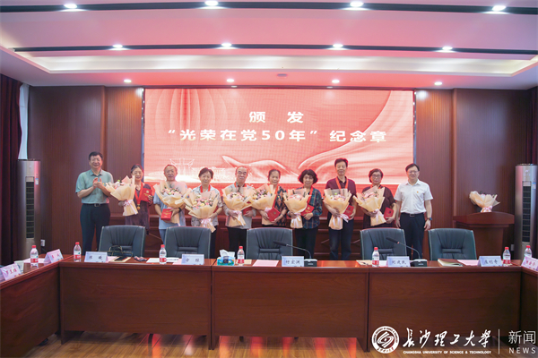 会上,与会人员在1966年加入中国共产党的老党员叶振斌领誓下,共同重温入党誓词,庄重表达不忘初心、牢记使命的坚定信念和决心。付宏渊、刘建民为杨练、黄生文、陈金香、邓伟民、黄春佳、陈平辉、李桂芝、连建辉、李淑媛等9位老同志颁发“光荣在党50年”纪念章并送上鲜花,向他们致以热烈祝贺和崇高敬意。