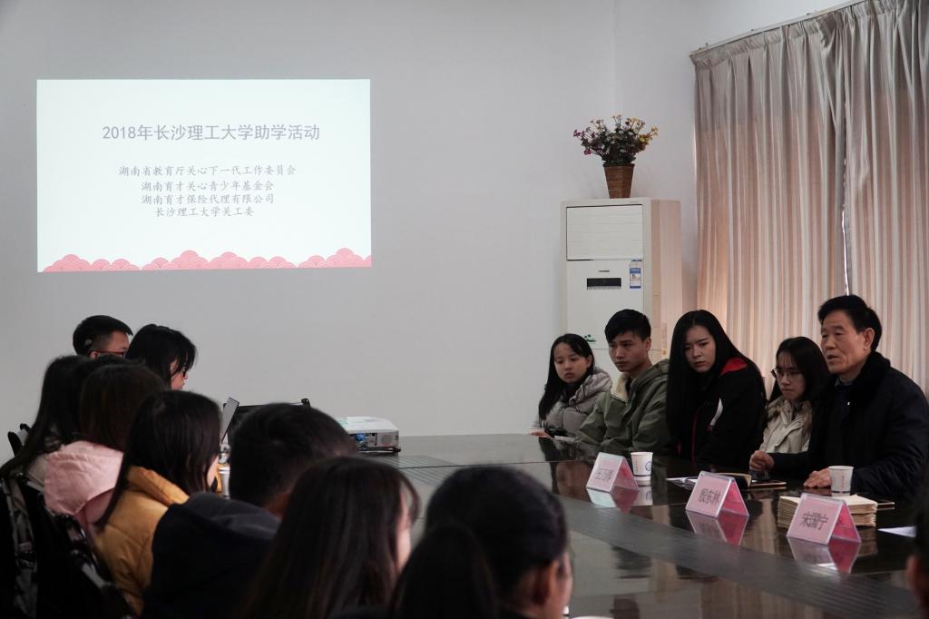 1月9日下午,2018年“湖南省教育厅关心下一代工作委员会、湖南育才关心青少年基金会、湖南育才保险代理有限公司”联合捐资助学活动于二办B404顺利举行。校关工委常务副主任王乃厚,育才保险代理有限公司驻雷竞技官网代表殷东林、学生资助管理办公室主任宋国宁参加。活动由宋国宁主持。