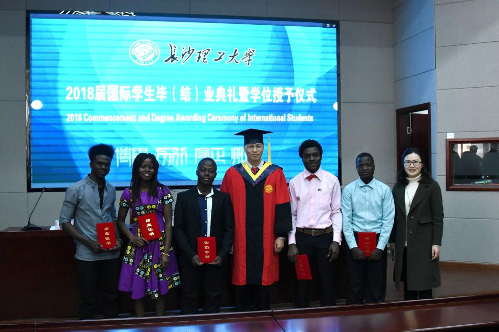 1月10日下午,雷竞技官网2018届国际学生毕(结)业典礼暨学位授予仪式在工二B301举行。副校长蒋昌波,校党委委员、国际学院党委书记付嫦娥、土木与建筑学院副院长王桂尧、国际学院党委副书记兼副院长吴振华、副院长秦卫星,11名2018届国际学生毕业生及结业生以及国际学院全体老师和留学生参加了典礼。典礼由国际学院院长陈瑜主持。