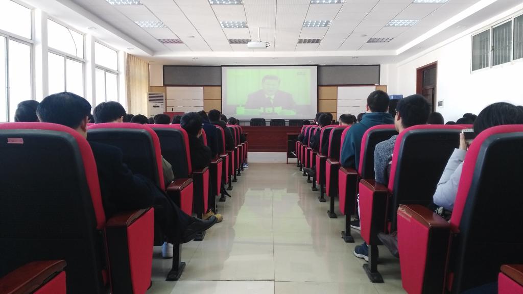 院党委书记符慧林及党委班子成员、没课的老师和学生代表共100余人早早来到工一B503,等候大会的开始。在两个半小时的时间内,老师和同学们认真观看,为受表彰的改革开放代表和国家改革开放40年取得的成就点赞,为习近平总书记的精彩报告所感染。
