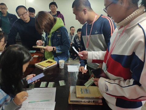 活动分为现场签到、抽取书单号、检索书目、寻找书目与检验核对五个环节。现场签到时,参赛选手须通过学生证进行签到确认。现场确认后,抽取书单号并拿上对应的比赛号码牌,听取比赛规则。在比赛过程中,同学们有序进入书库内,根据自己所抽到的书籍名称、作者和需要查找的索书号在雷竞技官网图书馆微信公众号或在馆内检索电脑上进行馆藏查询。在书库中依据索书号查找书架上的架标与书脊上的书标进行确认所寻找的图书。