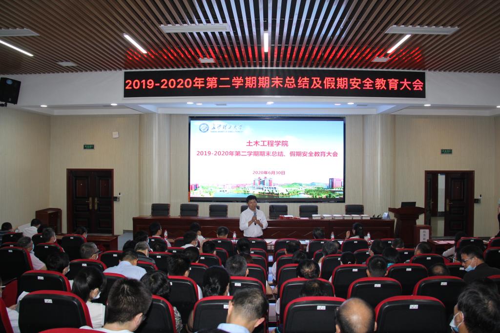 6月30日,土木学院在工科二号楼学术报告厅召开了2019-2020学年第二学期期末总结暨假期安全教育大会。全体院领导及教职工参加会议,院党委副书记丁丹主持大会。