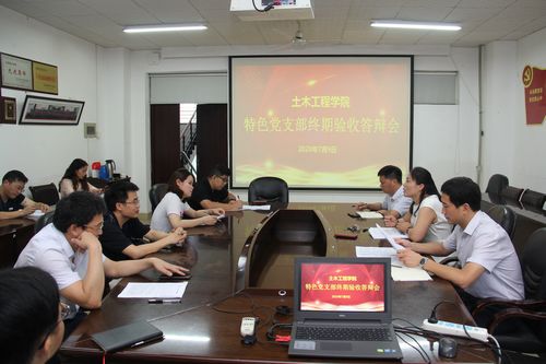 7月9日上午,土木学院党委在工二407会议室组织召开“特色党支部”验收答辩会,学院党委成员、教工党支部书记、学生党支部书记参加会议,会议由院党委副书记(主持工作)丁丹主持。